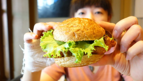 珍珍個人偏愛外層炸到香酥的脆皮雞排,所以選了脆皮香雞排當我的漢堡肉囉!