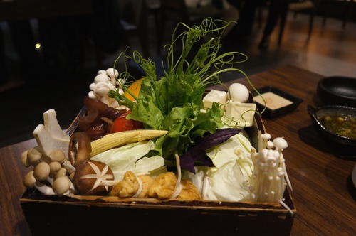 龍鬚菜、雪白菇、鱈魚子福袋、蕃茄等,