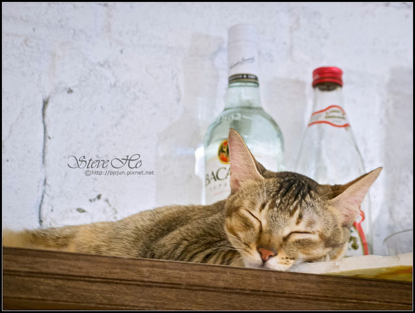 ▼ 小虎躲在吧檯上方的架子上,要不是店員告訴我,皮皮君可能完全不會發現牠