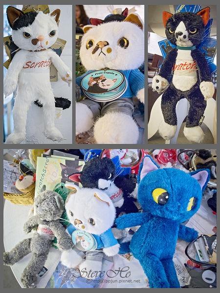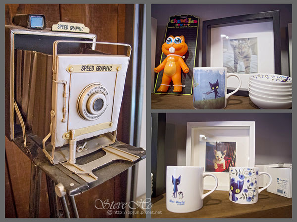 ▼ 餐廳中間有一個小圓桌,也擺滿了各式與貓有關的小東東,但皮皮君覺得這些貓玩偶心情感覺不是很好說~