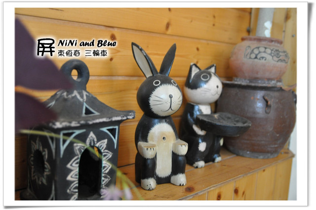 當我們欣賞老闆精心的布置時,發現這兩個木雕不知道是兔子還是貓??傻傻方不清楚