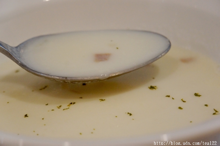 首先登場的是濃湯和小麵包,濃湯一點不濃稠,一喝便知這是以鮮奶熬製而成,不似坊間放了許多澱粉的濃湯,清甜可口。小麵包,表皮薄又脆,不油膩,內層超鬆軟,越嚼越夠味。