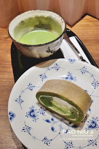單片抹茶蛋糕捲+抹茶之套餐(350元)另有玄米口味的蛋糕捲
