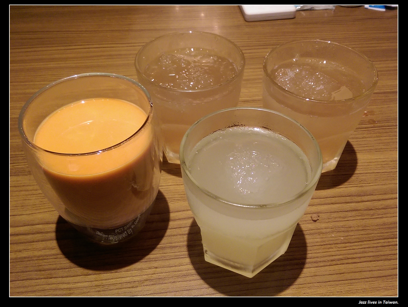 左起熱香茅茶, 冰薄荷茶, 以及另外跟服務生要的冰開水,