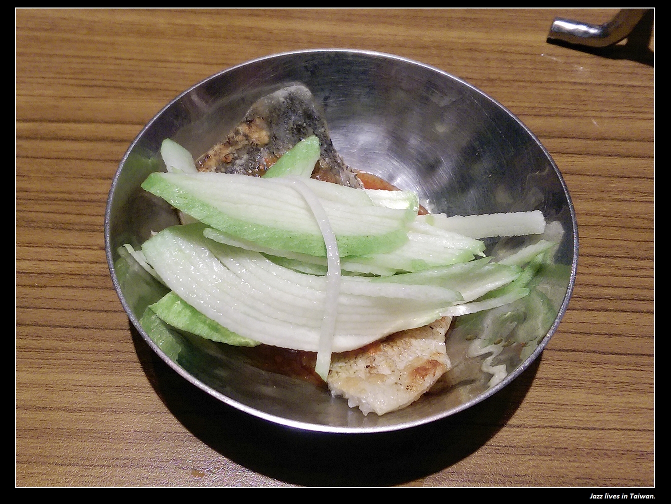 芭樂與時魚搭配的這道菜, 醬汁與上相似但味道再甜一些, 不過搭配芭樂的香卻更能點出兩者搭配的風格,