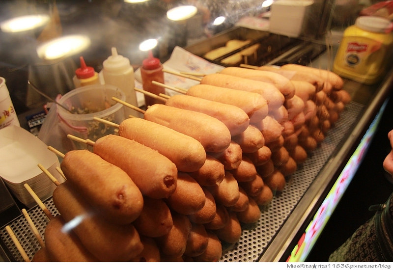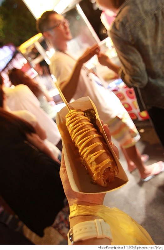 剛炸好的熱狗上淋上滿滿的香濃起司醬,讓人看了就忍不住想咬上一口