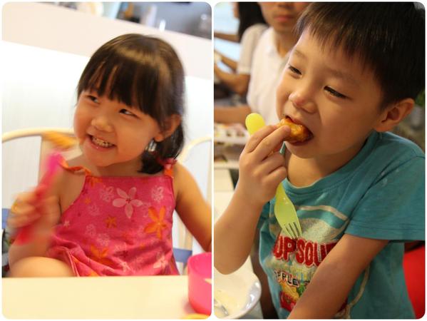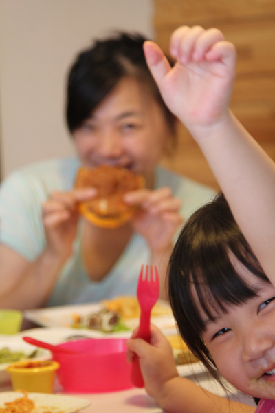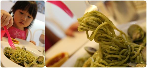 小朋友果然喜歡吃麵,麵一上桌,就急著動手。