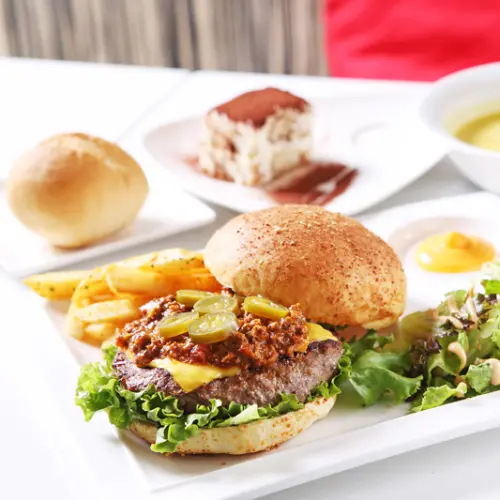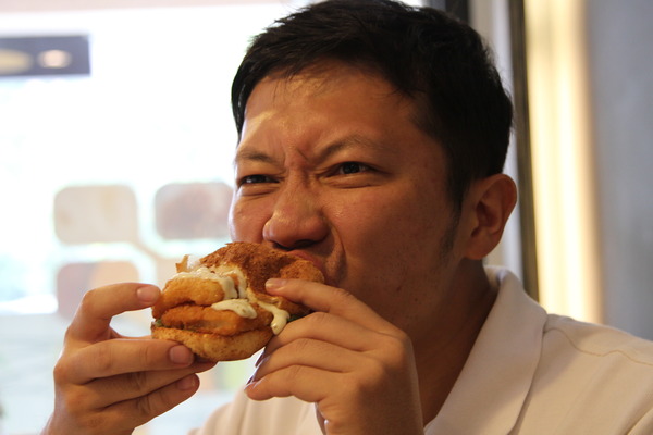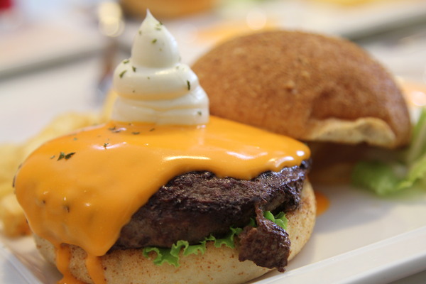 雙重起司牛肉堡,是店家推薦的人氣商品,這坨尖尖的是怎樣,醬料嗎?
