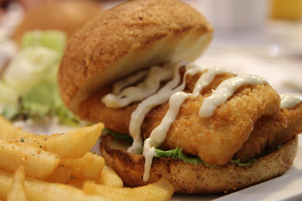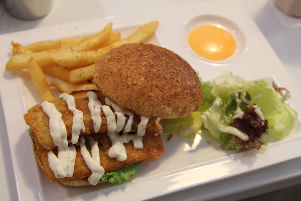漢堡上桌囉,塔塔雙層鱈魚堡,分量十足的鱈魚堡,麵包與附餐的一樣,但是,比較大,而且,烤的蘇香酥香的,再加上鱈魚的香氣與酥度,超好吃的。