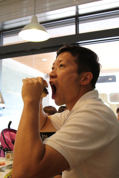 麵包是軟法,吃起來也挺不錯的呢,麵包上桌,虎甜心就急著搶著吃。