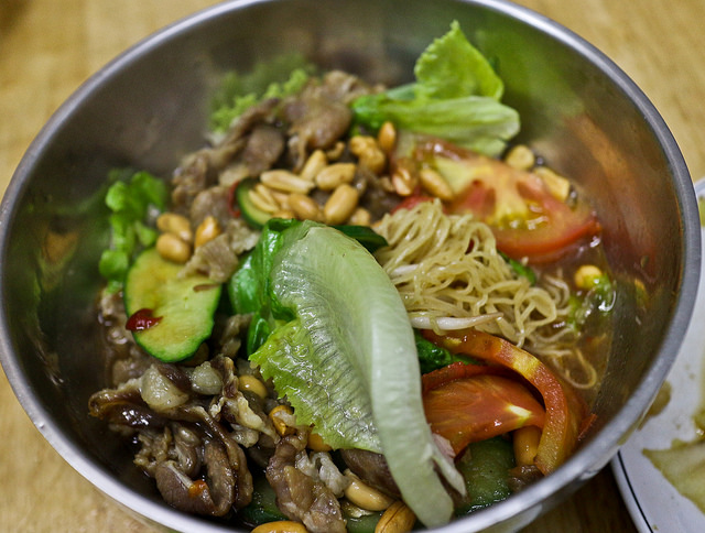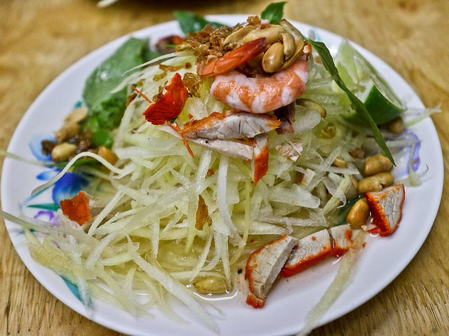 平常很少吃的東西,這道除了青木瓜外,上面擺了蝦子,花生,叉燒