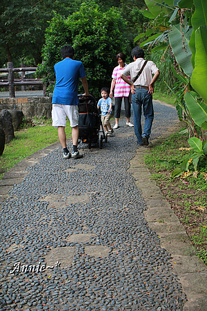 漫步在以碎石鋪設的平緩步道上,層層樹蔭開始有涼爽的感覺~