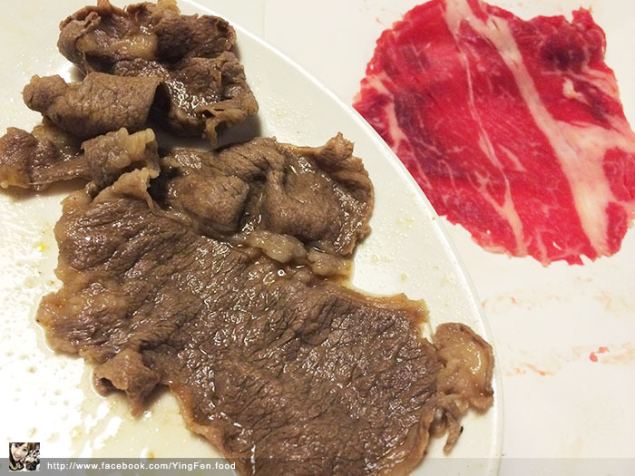 霜降牛肉(美國)跟剛剛的肋眼牛排花色差不多,只是他的白色脂肪分布的比較均勻,吃起來白色脂肪比較少一點。