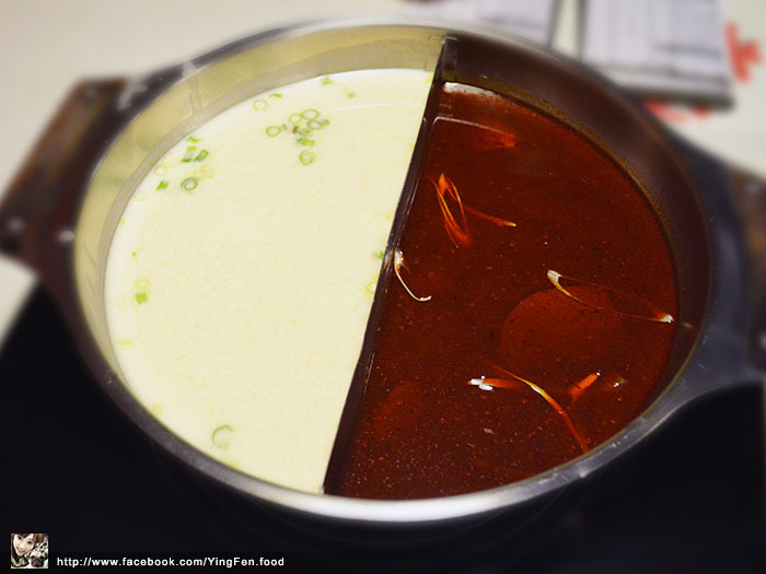 左邊是牛奶味噌鍋,喝起來口感很濃郁有牛奶味道,帶有淡淡的味噌;右邊是麻辣鍋上面有辣油,喝起來有麻麻的辣味,味道好香很適合放肉片。