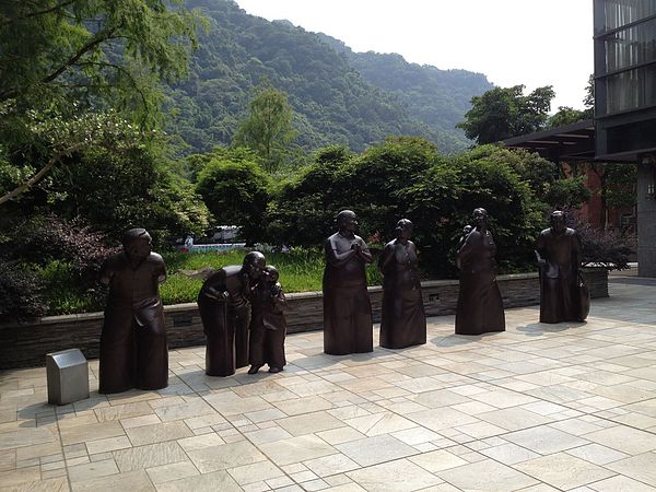 買完票後,往裡走,眼前所看到是一片翠綠山色與人像雕塑。