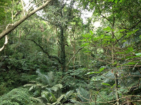 看完了魚藤,又再向上爬坡,說不累其實也蠻耗體力的,空氣的清新緩和了呼吸的喘聲,雖說大阪根是台灣唯一中低海拔熱帶雨林,有著豐富的熱帶雨林森林林相,但對植物盲的我,只看見這棵樹,那棵樹,這棵好高,那棵看起來好古老的完全無知識的簡單想法。