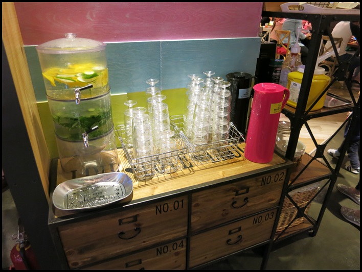 自助區,光是水就有好幾種可以選擇,有加檸檬跟萊姆的,