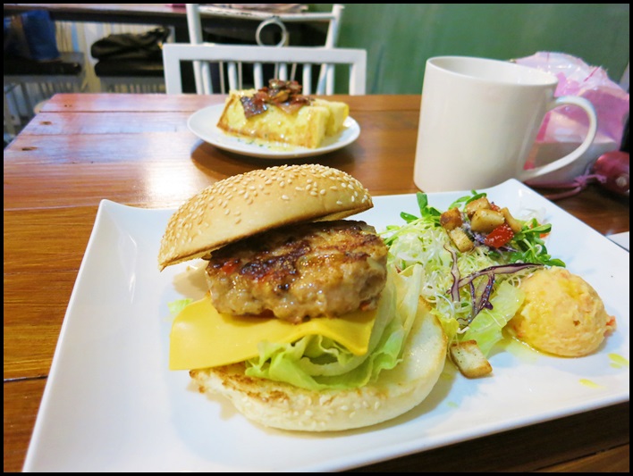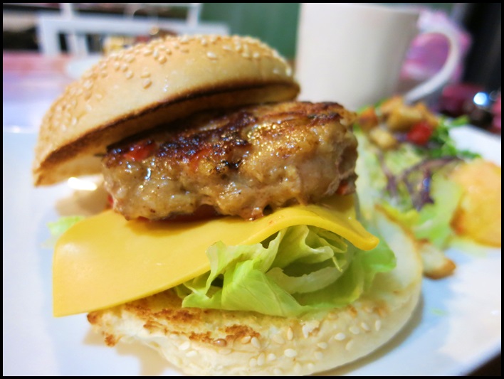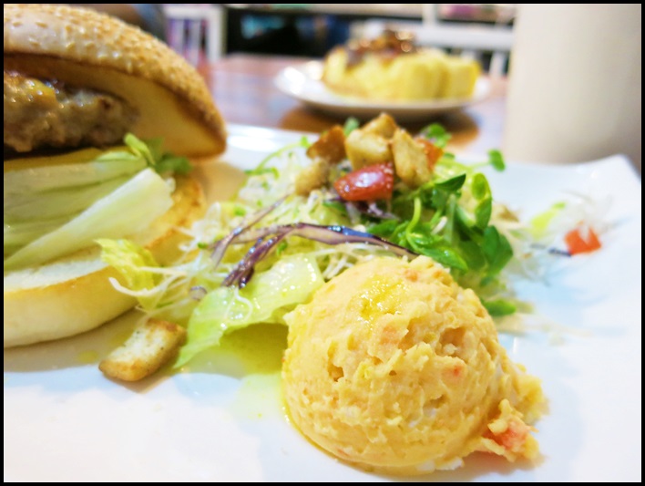 手工豬肉排起司堡套餐120元,套餐除了飲料外還有特製薯泥加沙拉,