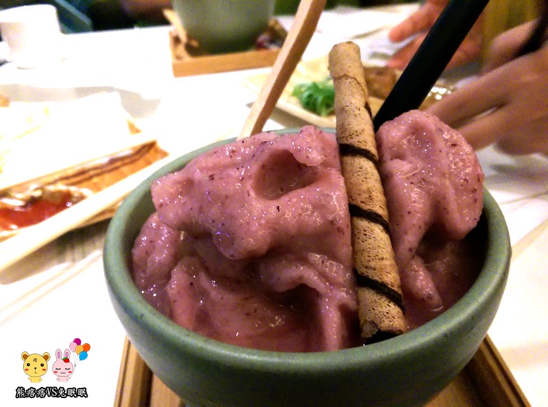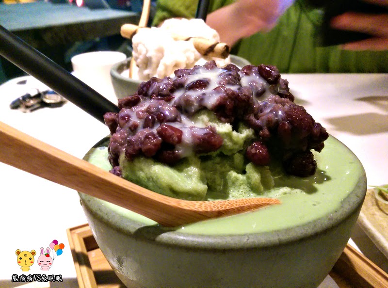 接著上菜的甜點重頭戲來了,我們原本以為冰沙是那種一杯的,沒想到抹茶紅豆冰沙是一碗,看起來超豐盛,可以用吸的,也可以用吃的,抹茶口味是還不賴。