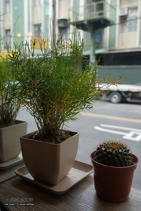 ↑雖然窗外沒有什麼景色,但綠色的小盆栽起碼帶了點綠意。
