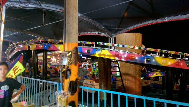 裡面包含釣娃娃、射氣球、棒球九宮格、碰碰車、雲霄飛車、海盜船、摸麻將等項目,約有一個L字型的區塊都是玩樂的。