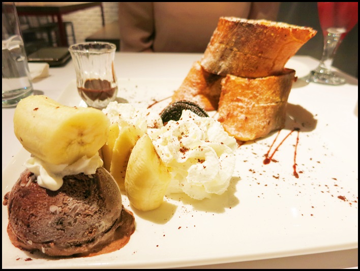 我們點的是香蕉巧克力口味,還有附奶油、oreo跟巧克力醬,