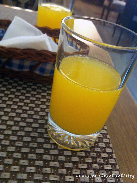 會先送上一杯柳橙汁~不管點什麼餐點都有噢!