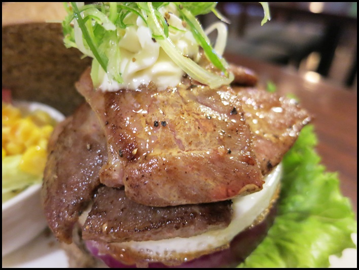 這個漢堡麵包用的跟剛剛的骰子牛不同,顏色深一點,味道也不錯