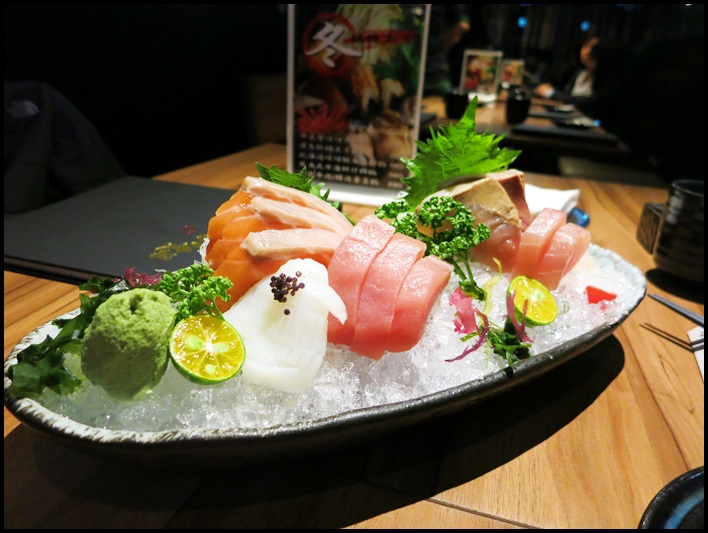 先上桌的是「六品盛合刺身」,其實到居酒屋類的餐廳好像一般不會出現這個,