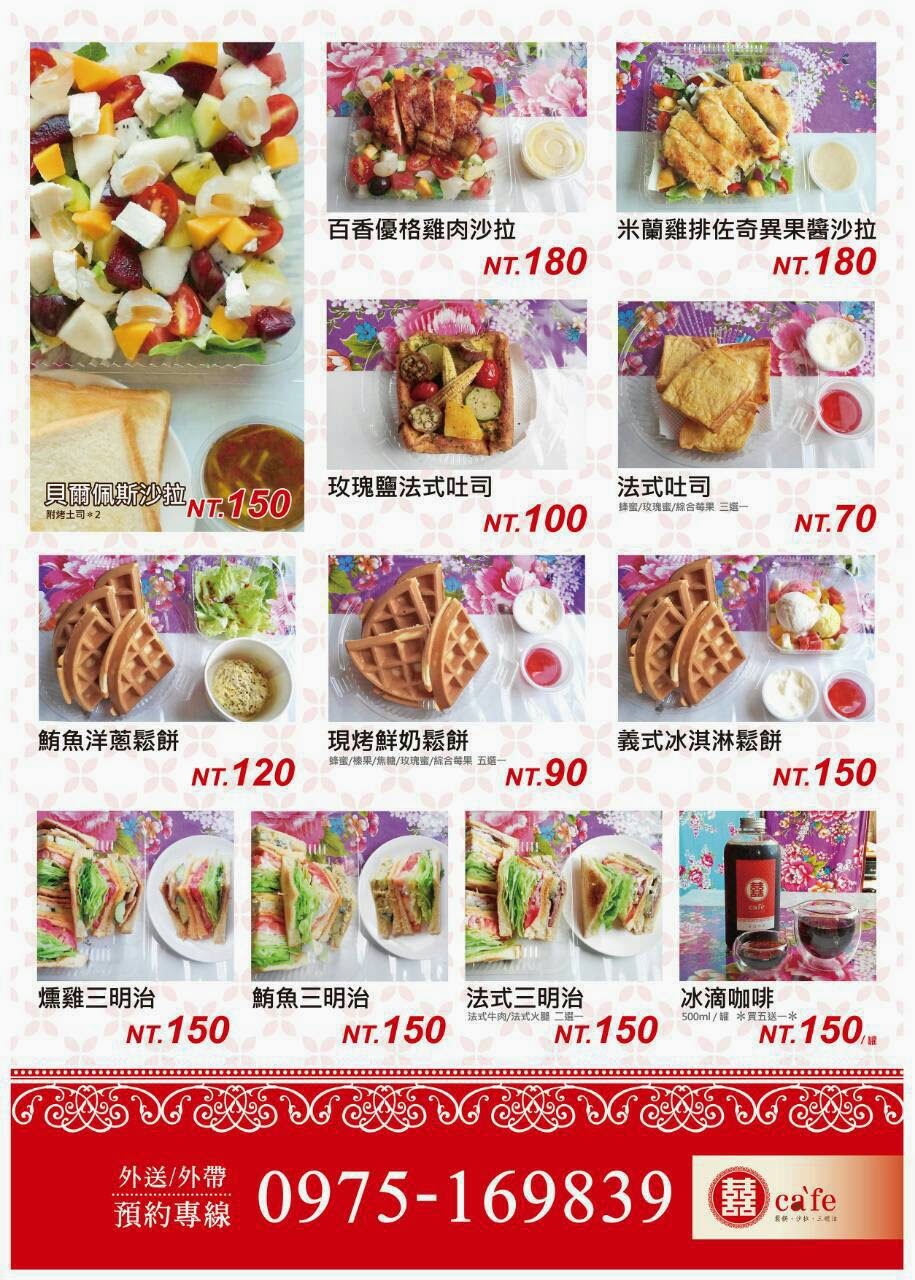 【囍ca'fe菜單】基本菜單如下,細節或是之後的更新要注意粉絲團喔~