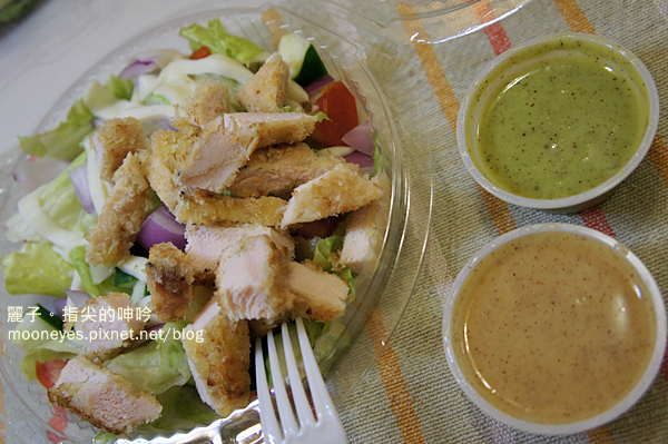 超大塊的雞排,鮮煎得很美。沙拉顏色豐富,可都是新鮮蔬果喔~