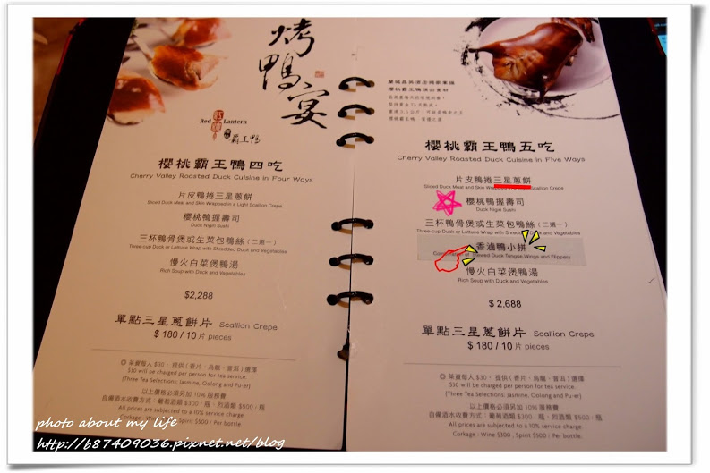 (烤鴨需事先預訂/所有餐點均加收1成服務費/用餐限定1.5hrs)