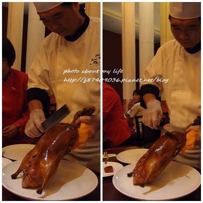沒多久油亮亮的烤鴨上桌嚕!唔~即使已經看了3次還是很興奮❤❤❤