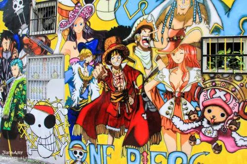 海賊王彩繪巷只要站定點由左至右180度轉頭就看完囉!但朝聖者都待很久,為什麼呢?