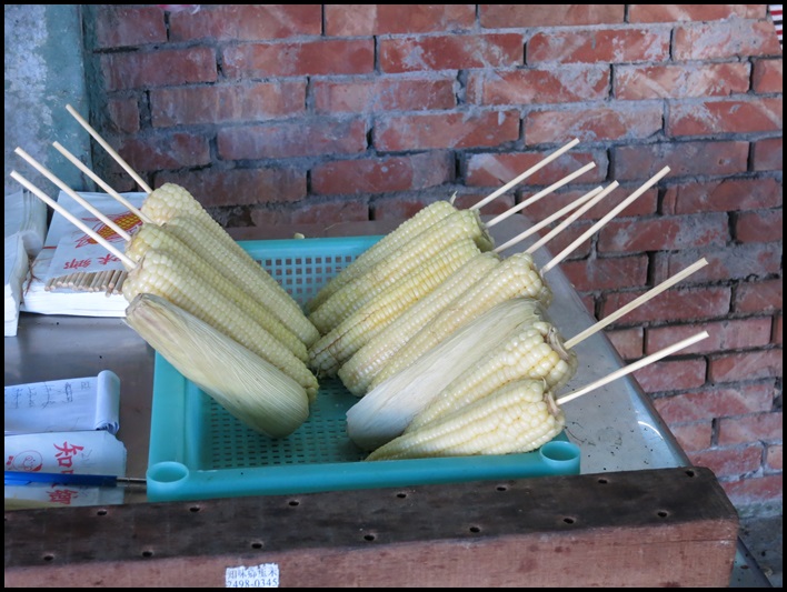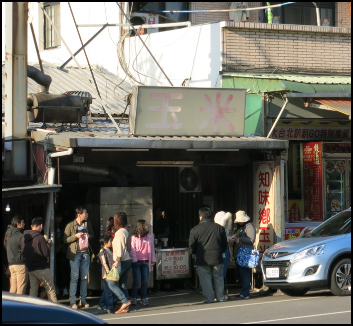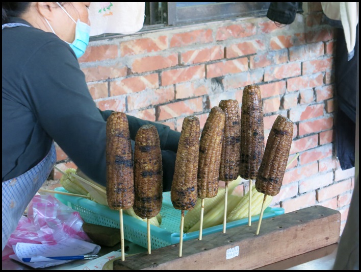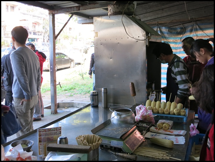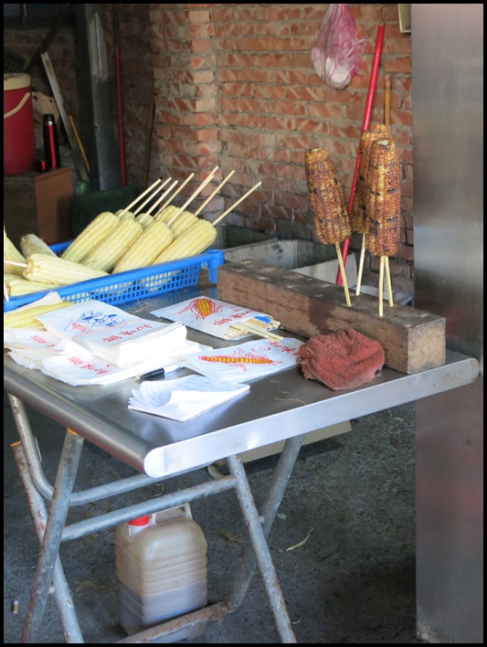對面的區塊有三台烤玉米小車,還不時可以聽到對面的本攤來點單要求支援呢