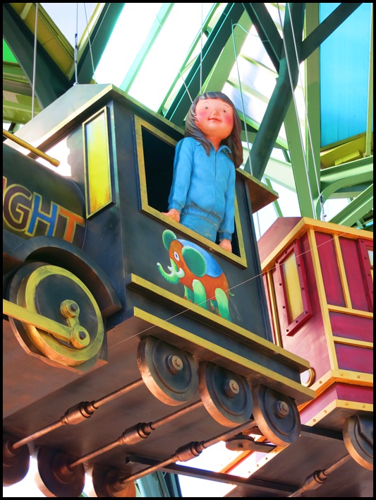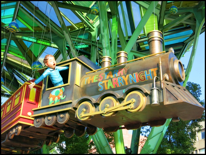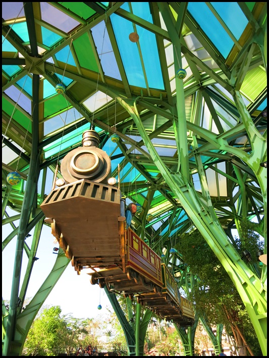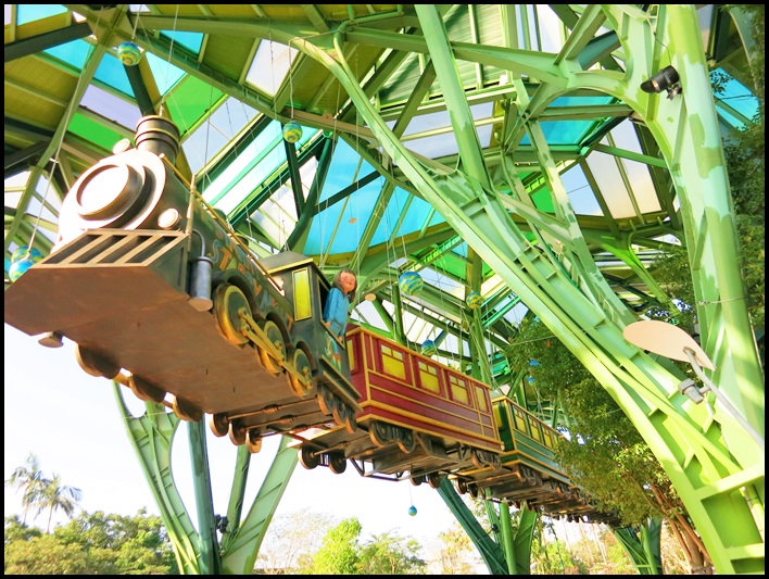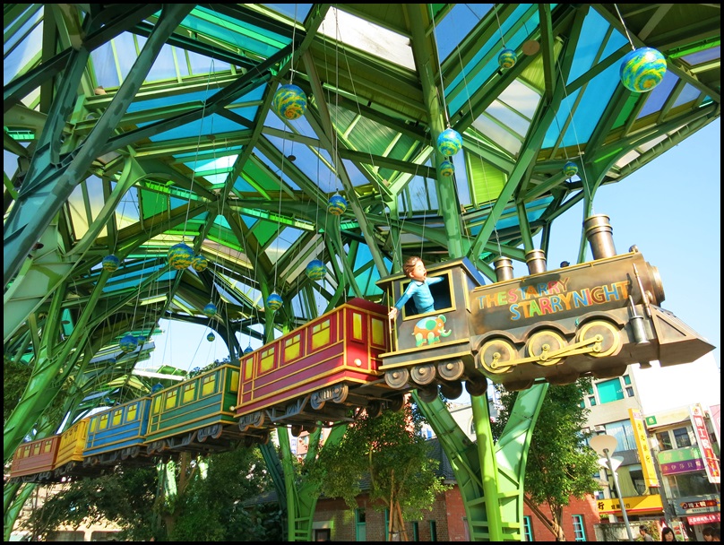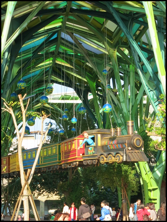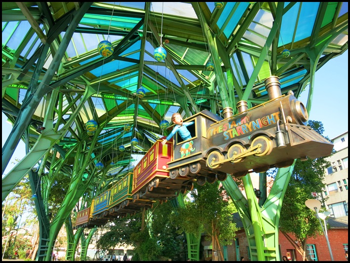 對面丟丟銅森林利用挑高的建築讓星空列車得以真正奔馳在空中
