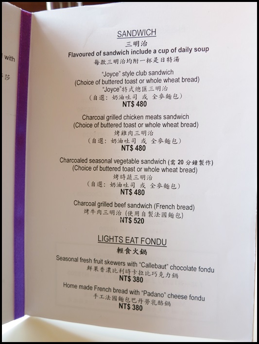 我們的目標是下午茶,所以服務生會送上這份下午茶菜單