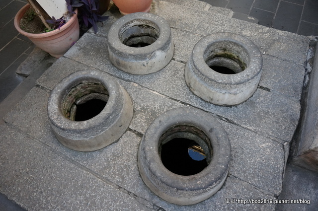 為避免取水民眾落水之虞,於是在井口蓋上有四個圓洞的石板,