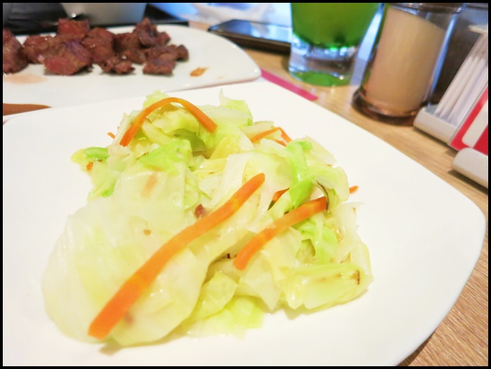 主餐吃了一陣子之後高麗菜才送上,