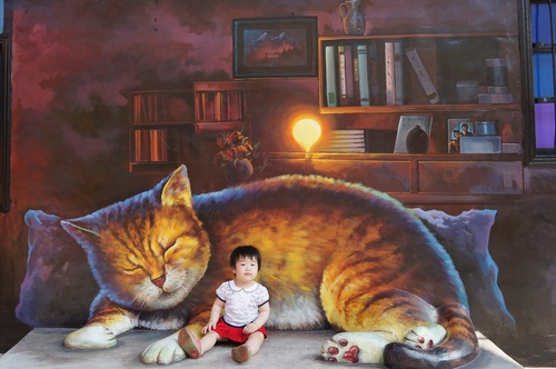 雲林景點推薦-融合故事繪本「屋頂上的貓」的"貓咪彩繪村"虎尾頂溪社區
