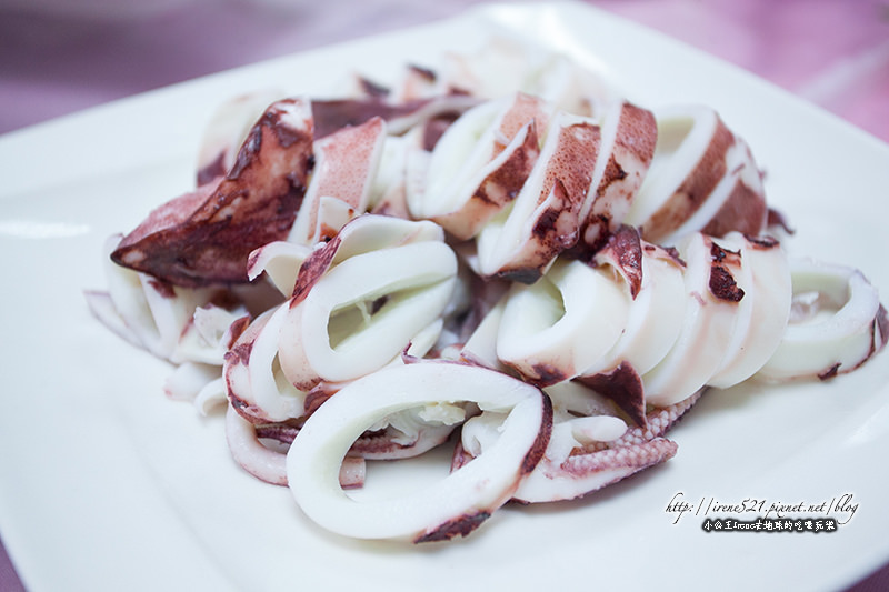 一樣也是新鮮簡單料理就很好吃的「川燙軟絲」,單吃甜美,肉Q不韌,令人印象深刻,