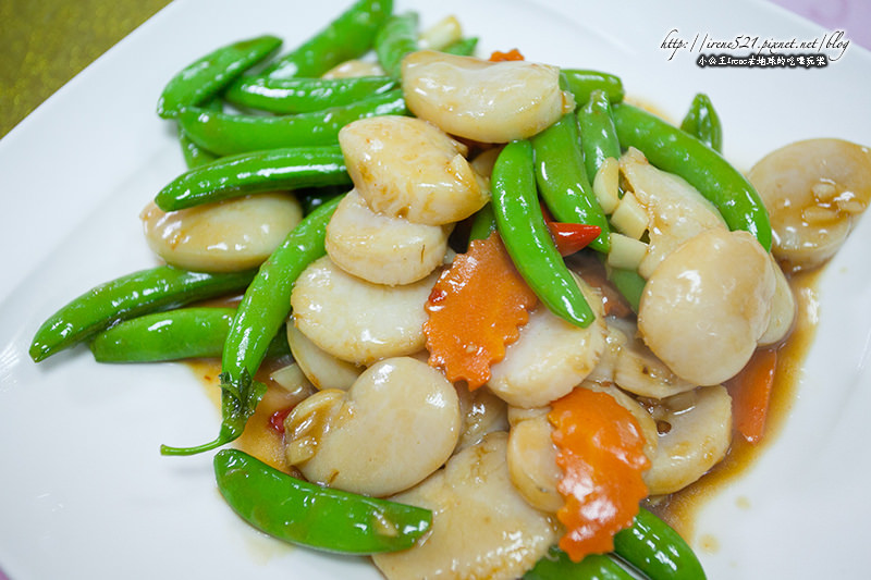 「炒干貝」將厚實的干貝剖半後,份量多很多,味道鹹甜,干貝超嫩又入味,Q軟脆,一下子就被秒殺。