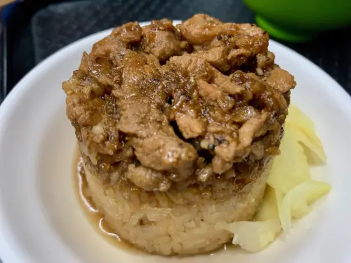 米糕吃起來黏性強,而且混合著滷汁讓每粒米都很有味道