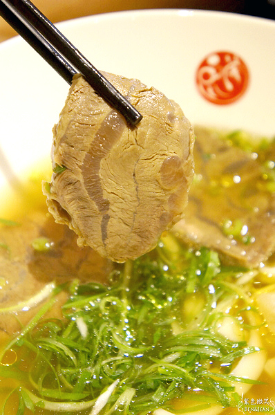 蘭味的筋肉雙盛牛肉麵,是採用牛腱心、牛筋,和川味不同的是湯頭