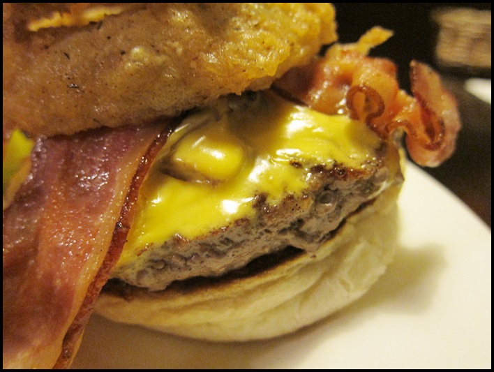 洋蔥下頭是培根和漢堡肉,不會太鹹的調味讓人開心