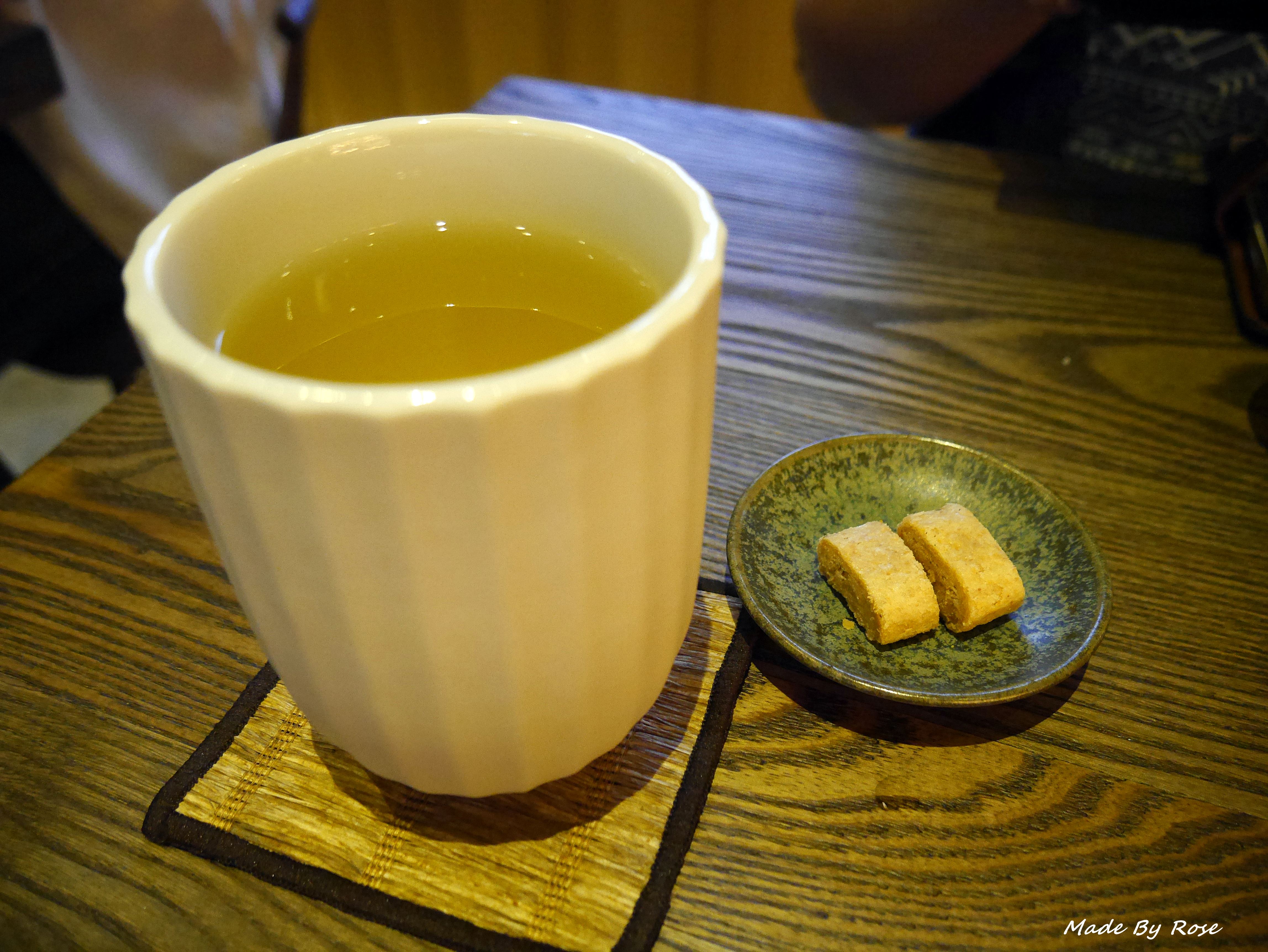 ↑品茶之前店員會先送上米餅與米茶,據說可以這個可以去除口中的味道。