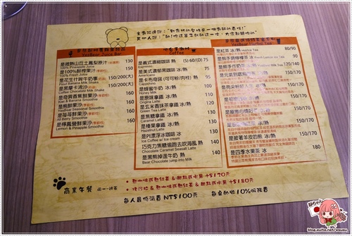 MENU是薄薄的一張紙,上面寫滿了好多可愛的餐點名稱。