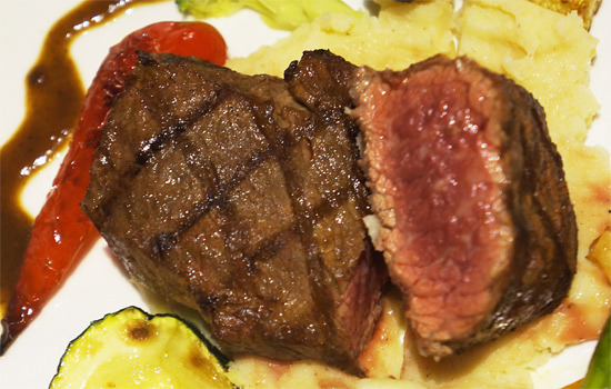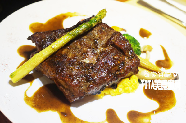 7分熟的牛肉排,搭上馬鈴薯泥沾著紅酒醬吃,簡直人間美味!!