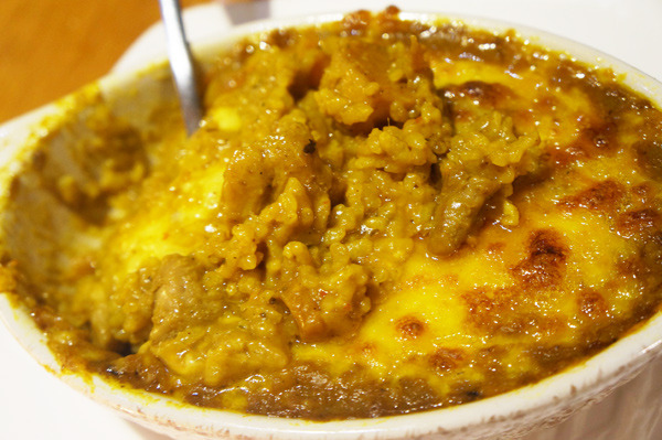 翻開來,濃稠的咖哩滲透到每顆飯粒裡面,起司都牽起絲來~
