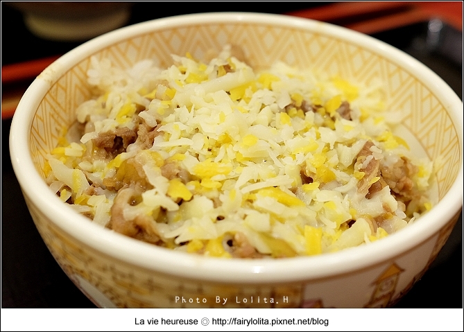 早在看到DM時,我就決定要點它,雖然不知起士加牛丼到底會蹦出什麼新滋味,但實在抗拒不了呀!只能說起士是種讓人又愛又恨的東西,喜的是美味,恨的是熱量爆高XD